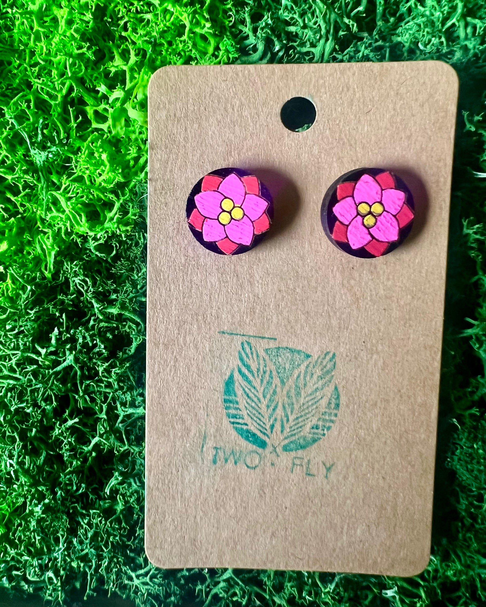 A soft but statement-making floral inspired by garden peonies in full bloom. Hand painted & Hypoallergenic Wood Stud.