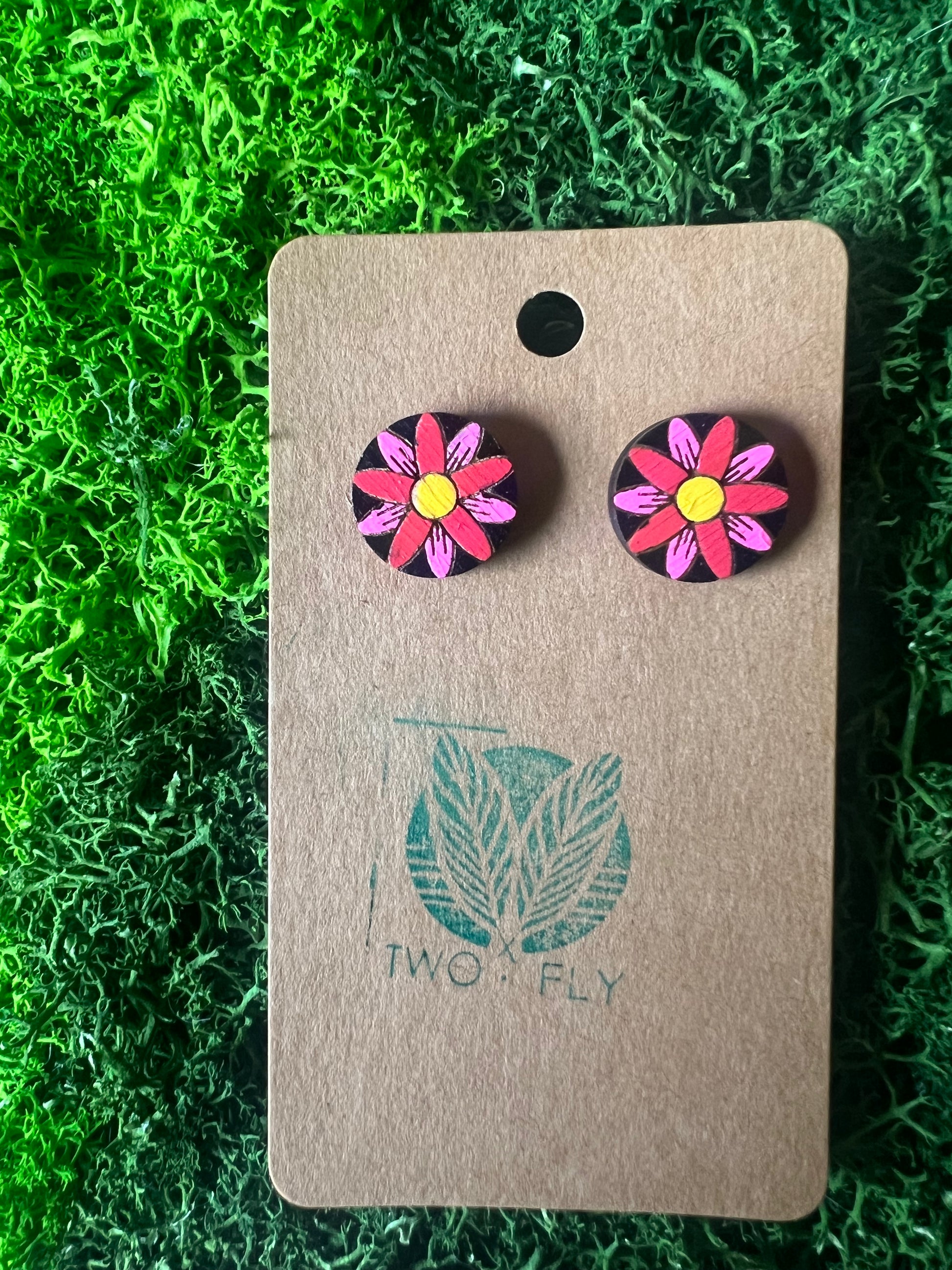 Bold and bright like a summer day — these blooms bring instant joy and sunshine to your look. Hand painted & Hypoallergenic Wood Stud.